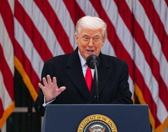 President Donald Trump pardoned a pair of turkeys at the White House on Tuesday, going on to joke that former President Joe Biden’s