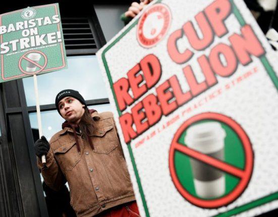 More than 1,000 unionized Starbucks workers went on strike at 65 U.S. stores Thursday to protest a lack of progress in labor negotiations